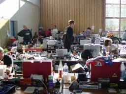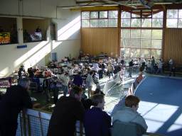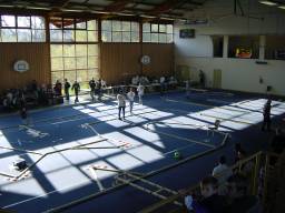 Vue sur les stands dans la salle La salle côté piste Les stands à côté de la piste